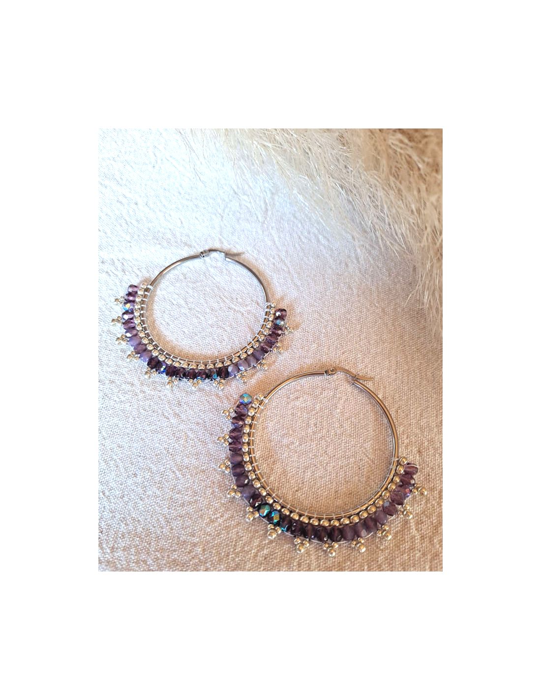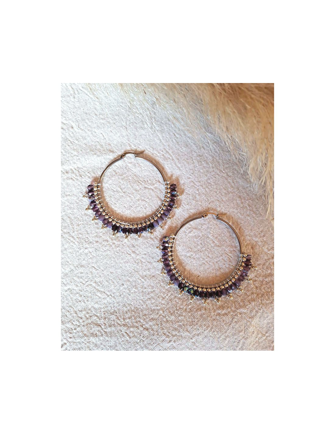 Ces boucles d’oreilles sont composées de perles de rocaille et de perles en cristal de bohème facettées.