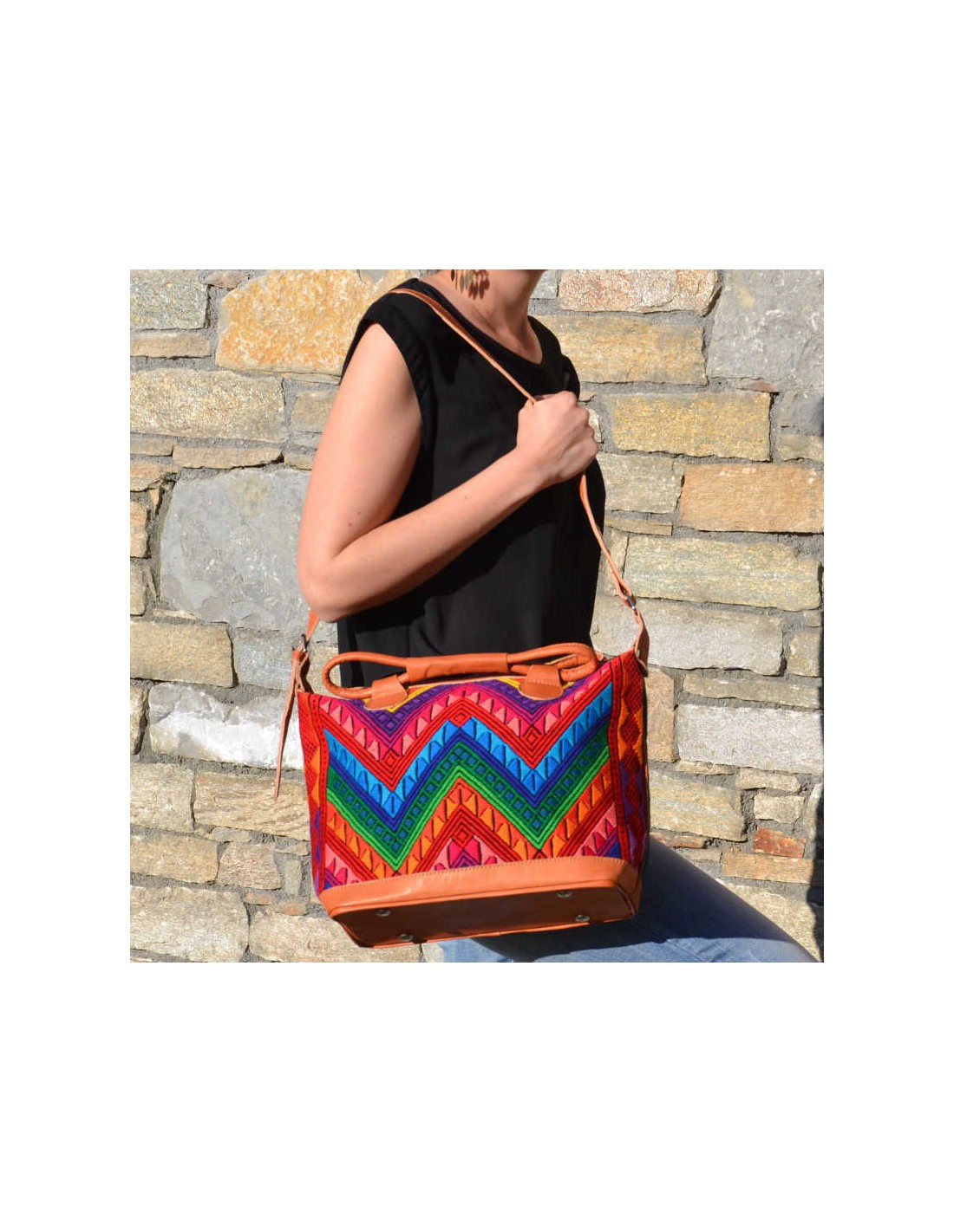 * Materials: LEATHER, HUIPIL. The Huipil is the traditionnal garnment worn by the Mayan Women from Guatemela.